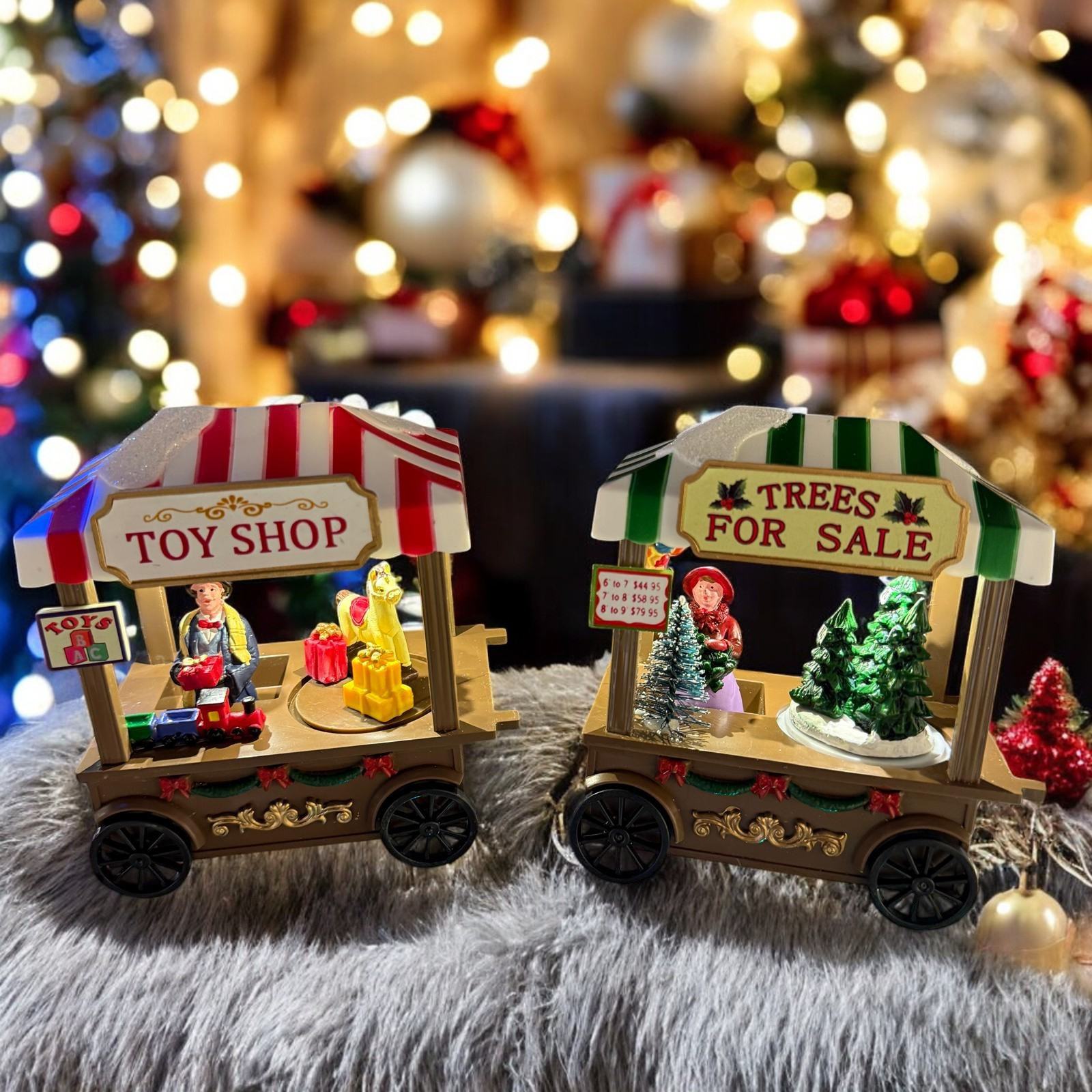 DECORAZIONE CARRETTO NATALIZIO C/GIOCATTOLI ROTANTI