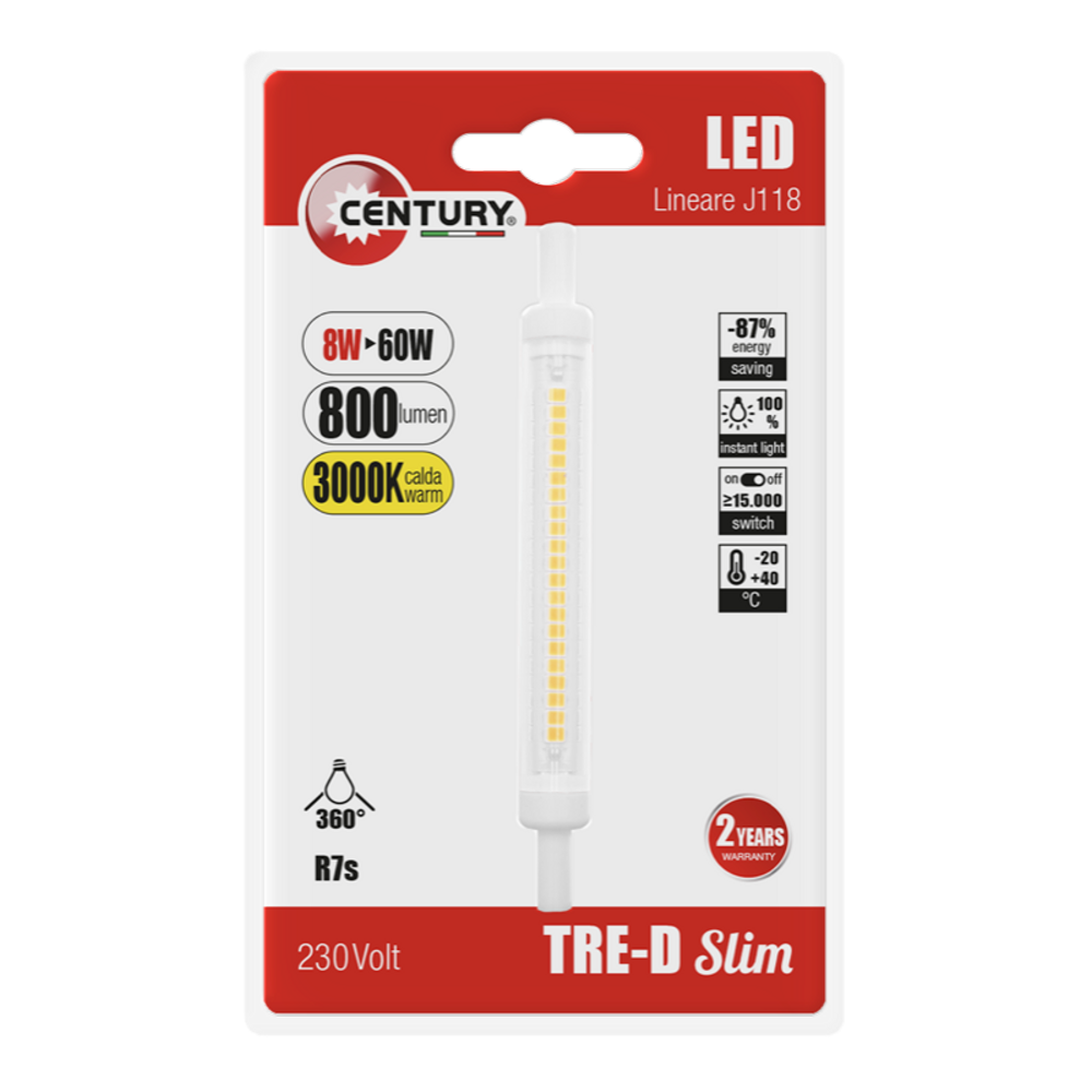 LAMPADA LED R7S 5W 3000K TRE-D SLIM 500LM BL.1PZ