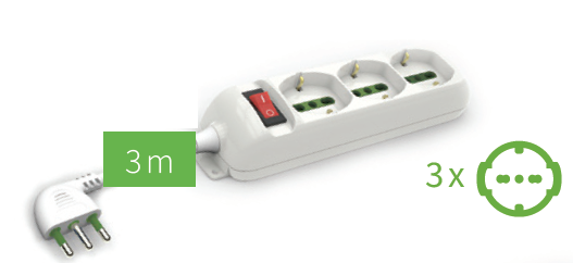 MULTIPRESA 3 POSTI SCHUKO + INTERRUTTORE BIANCA C/CAVO 3 MT