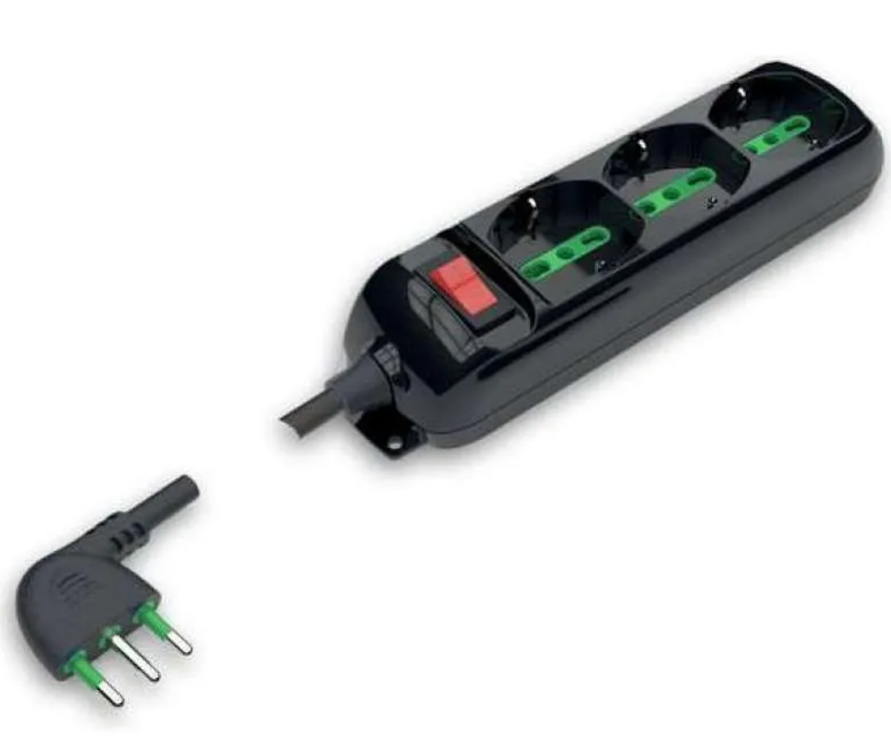 MULTIPRESA 3 POSTI SCHUKO + INTERRUTTORE NERA C/CAVO 1,5MT