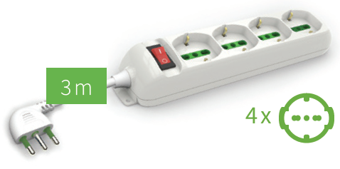 MULTIPRESA 4 POSTI SCHUKO + INTERRUTTORE BIANCA C/CAVO 3 MT