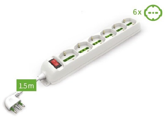 MULTIPRESA 6 POSTI SCHUKO + INTERRUTTORE BIANCA C/CAVO 1,5MT
