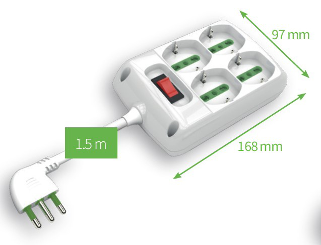 MULTIPRESA QUADRATA 4 POSTI CON INTERRUTTORE