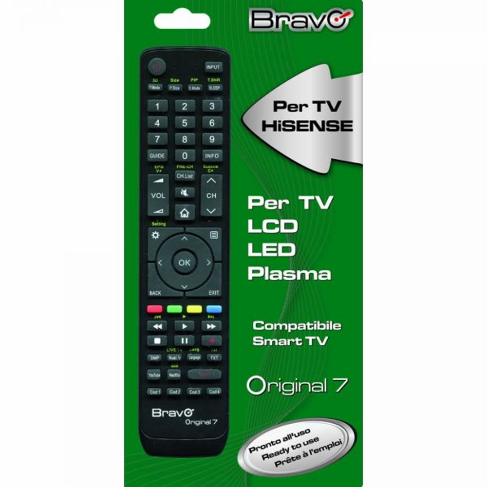 Telecomando dedicato per TV di marca HISENSE. Non necessita di alcuna programmazione. Mantiene i codici durante il cambio batterie.
