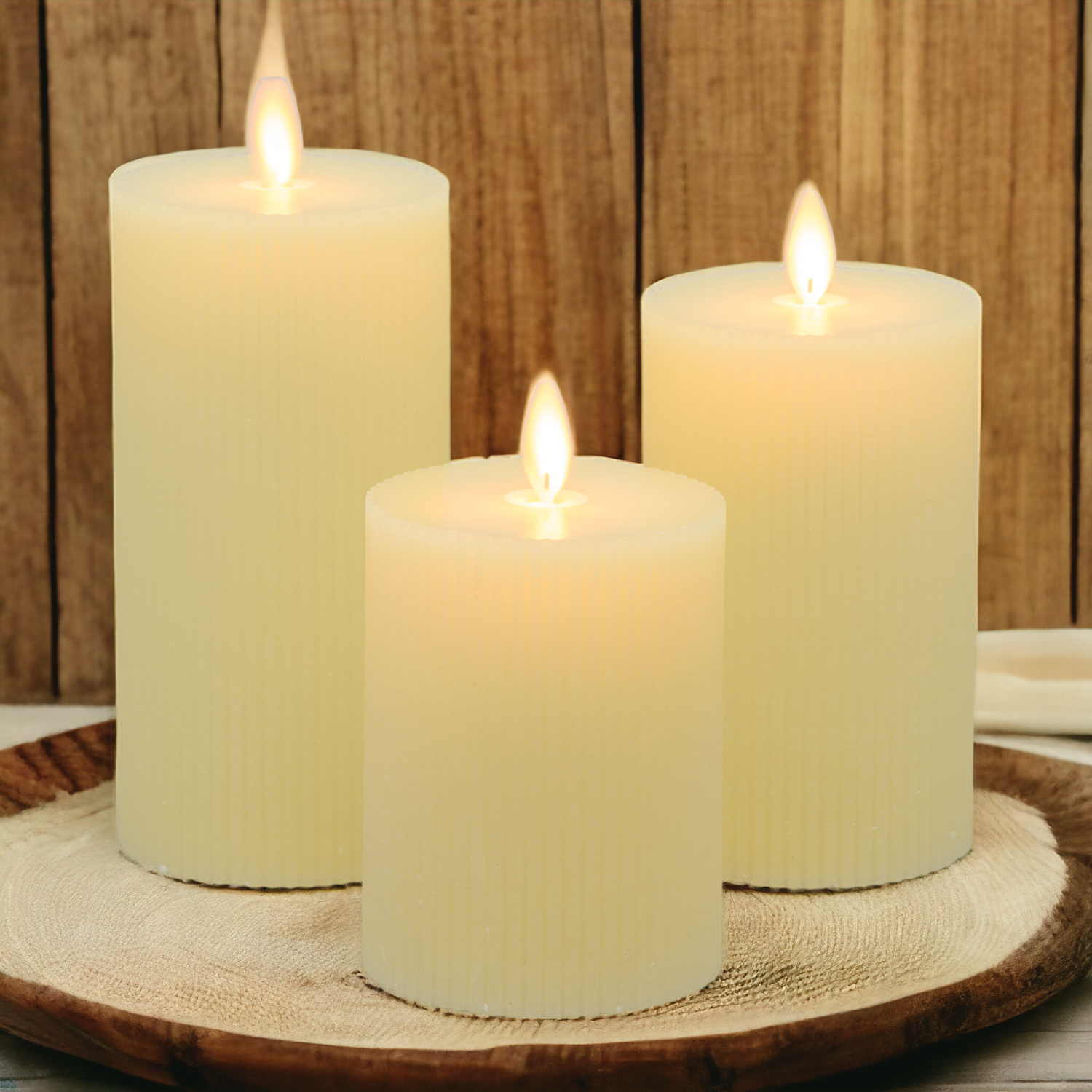 SET 3 CANDELE CON FINTA FIAMMA Ø7,5 H10/12,5/15CM AVORIO